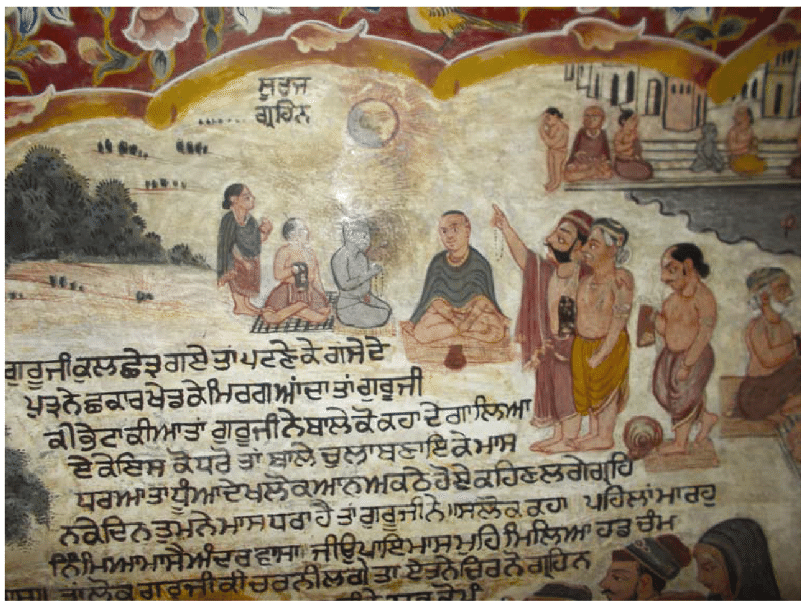 Guru Nanak Dev Ji came to kurukshetra (เจเฉเจฐเฉเจเจธเจผเฉเจคเจฐ / เจเฉเจฐเฉเจเฉเจธเจผเฉเจคเฉเจฐ) during his First Udasi on the Amavas Night of Baisakhi. When he reached kurukshetra, a very big fair was on. A few hundred thousand people had gathered for the fair as they come even today. It was a day of solar eclipse. It was the kind of pilgrimage, and they were getting ready to bathe in the sacred tank there (Called Brahm sarovar). The Guru did not go there to see the fair, nor did he go there to have a bath to purify himself. He went their to guide the misguided people. Generally, people believed that when there is an eclipse of the sun or moon, then two demons named rahu and ketu influence them with the intent of killing them. So, people have a bath and give charity. They believed that by the effect this bath and charity the demons go away and are not able to cast their evil influence. This belief was not true because an eclipse is a natural phenomenon. It is only a shadow caused by movement of earth and moon in relation to the sun. ย Today the Same beliefs are followed on solar eclipse. Therefore, Guru went there to take people out of false belief of the fear of demons and put them on true path of recitation of lord’s name with love. He went to teach that one should give charity often and have a bath every day, but one should not have a mistaken belief of fear from the demons.